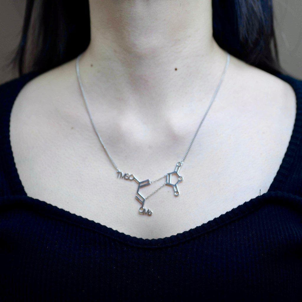 Yuzuru Kanda was born and raised in Japan. He moved to the US in 2015, and now works at a pharmaceutical company in Boston. Alongside his scientific career, Yuzuru is the owner of a chemistry jewelry brand, Kagakuya driven by his passion for the beauty of molecular structures. Inspired by the hidden artistry of organic molecules, Yuzuru wanted to transform this invisible beauty to wearable art. Yuzuru’s mission is to show a new appreciation for the artistic side of chesmitry that is not just about equations, but also about creativity and beauty, challenging the perception that it is a dull subject.