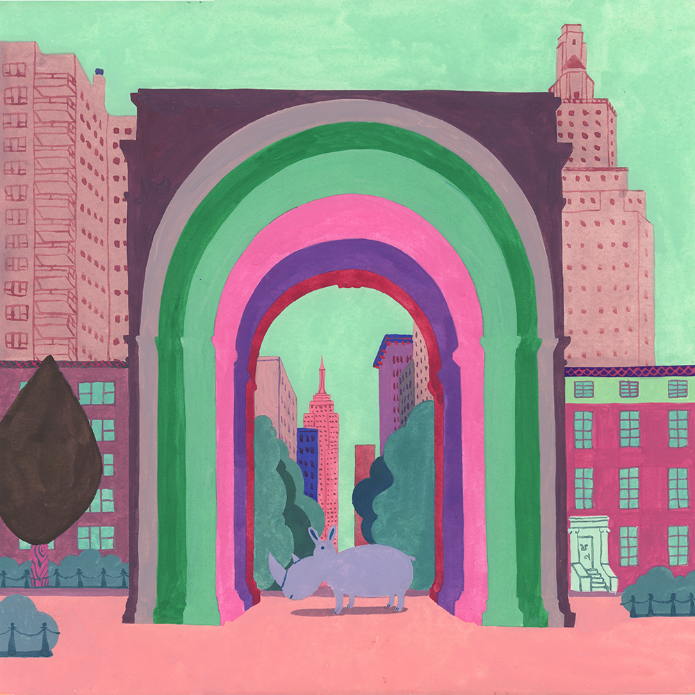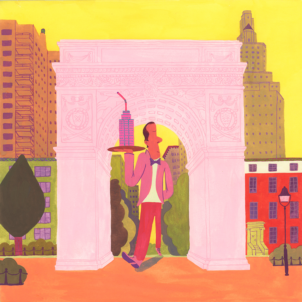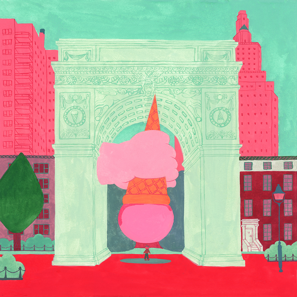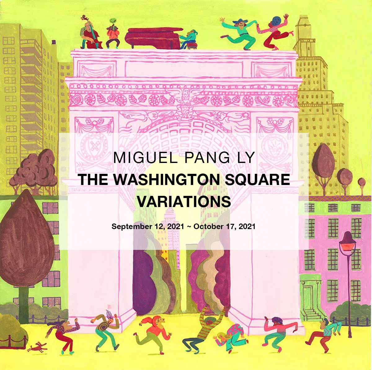 AG Gallery is pleased to announce that a solo exhibition “The Washington Square Variations” by Miguel Pang Ly is fonally opening on Sunday, September 12, 2021. The illustrations of the Washington Square Variations are made based on a mixture of Miguel’s imagination and his actual visits to the Washington Square while he was staying in New York City. This time we are pleased to invite you to a wall full of his art, 39 original Washington Square paintings by him.